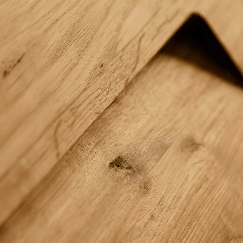 - Aus Wildeiche Massivholz und Stahl hergestellt