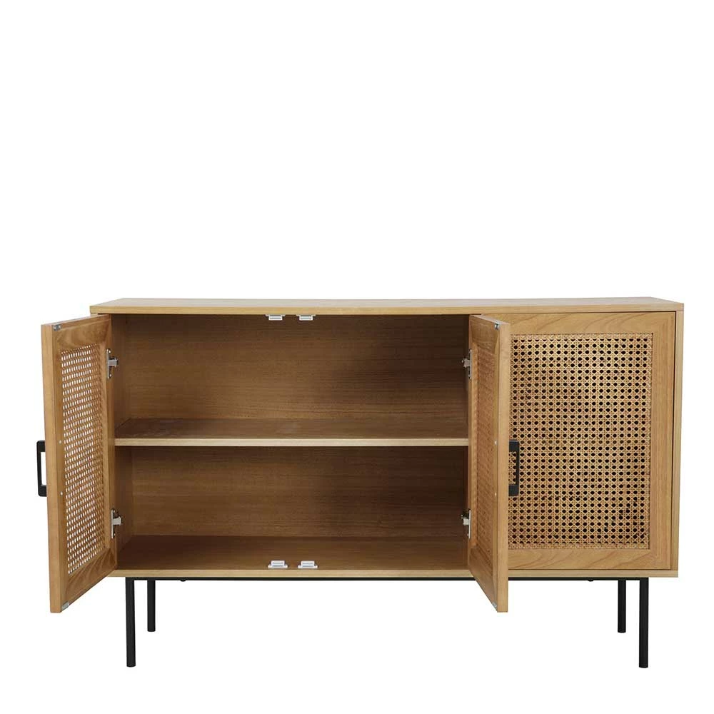 - Türen mit einer Füllung aus luftigem Rattangeflecht gestaltetin, innen zwei Einlegeböden