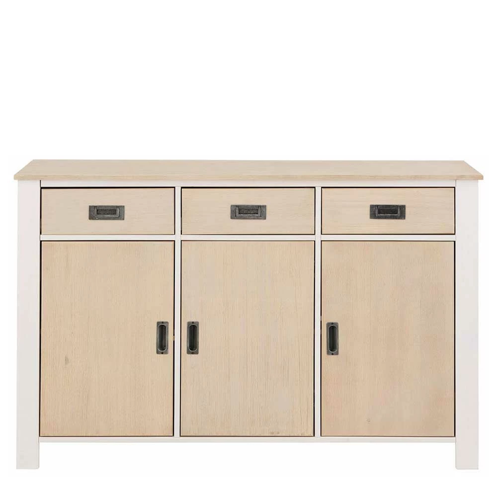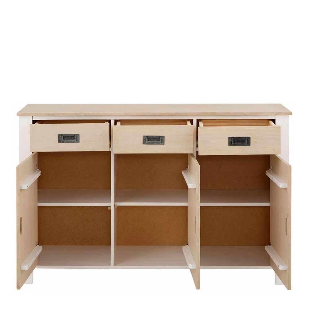 - Ansprechendes Sideboard in Weiß und Kieferfarben