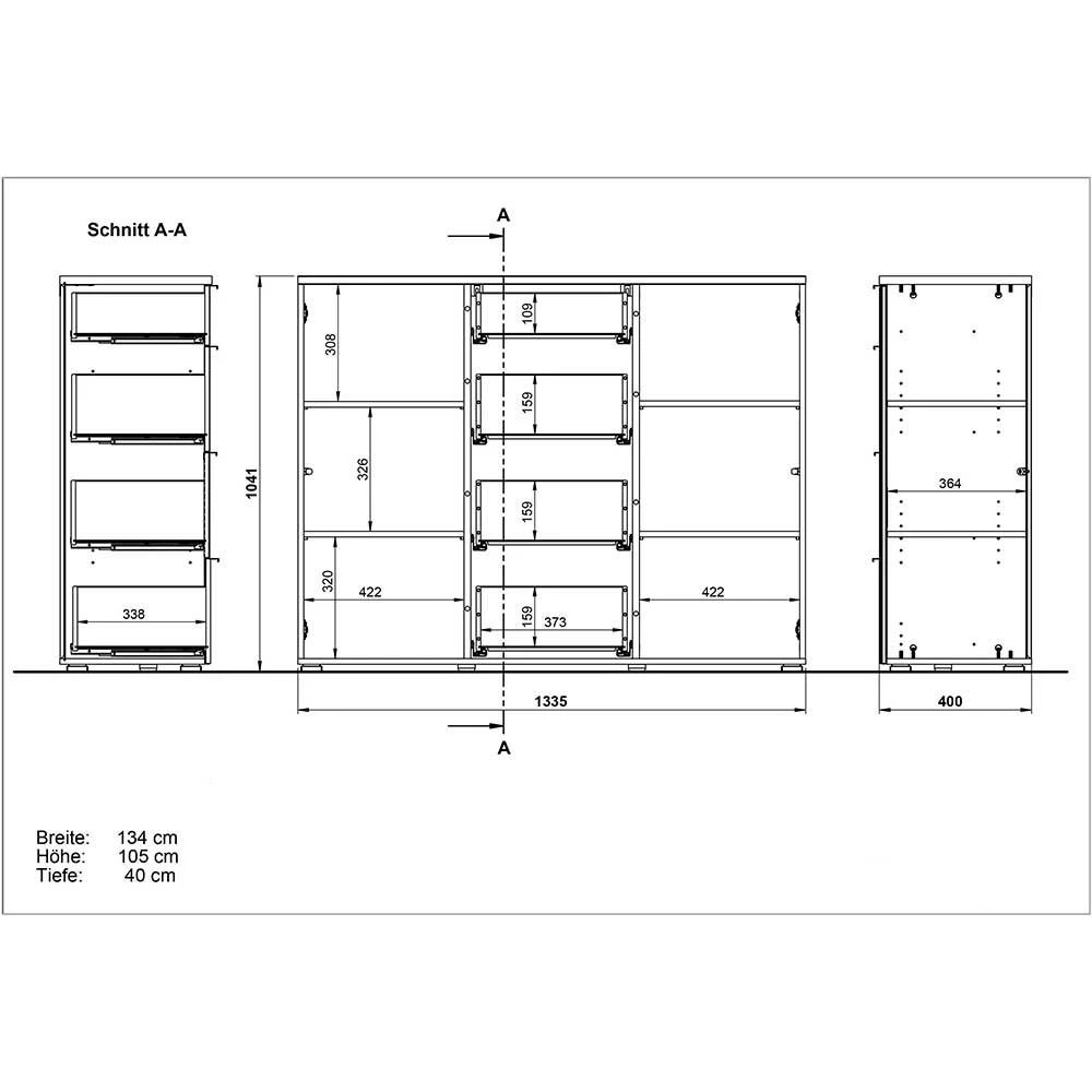 - 135 cm Breit, 105 cm Hoch, 40 cm Tief