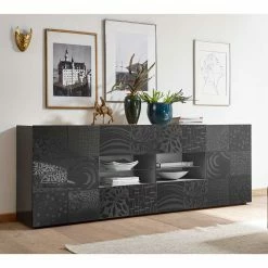 - Topmodernes Highboard in Silber- und Dunkelgrau