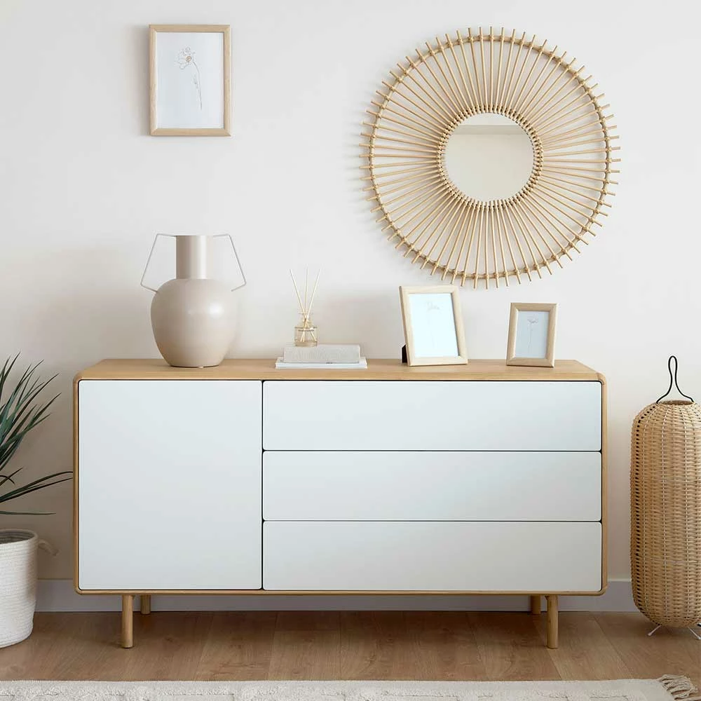 - Attraktives Sideboard in Weiß und Eschefarben