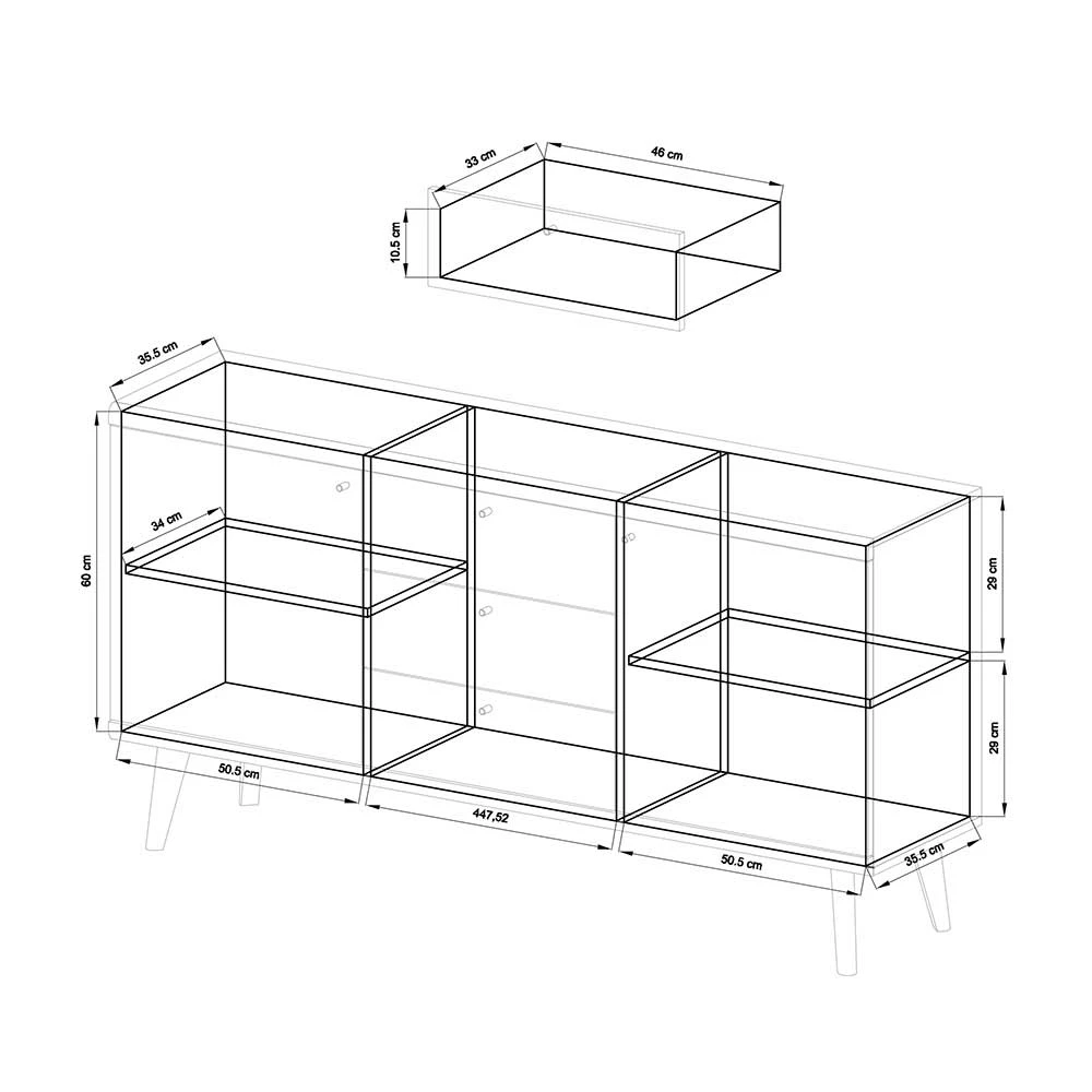 - Innenmaße der Schubladen: BxHxT: je ca. 46×10,5×33 cm