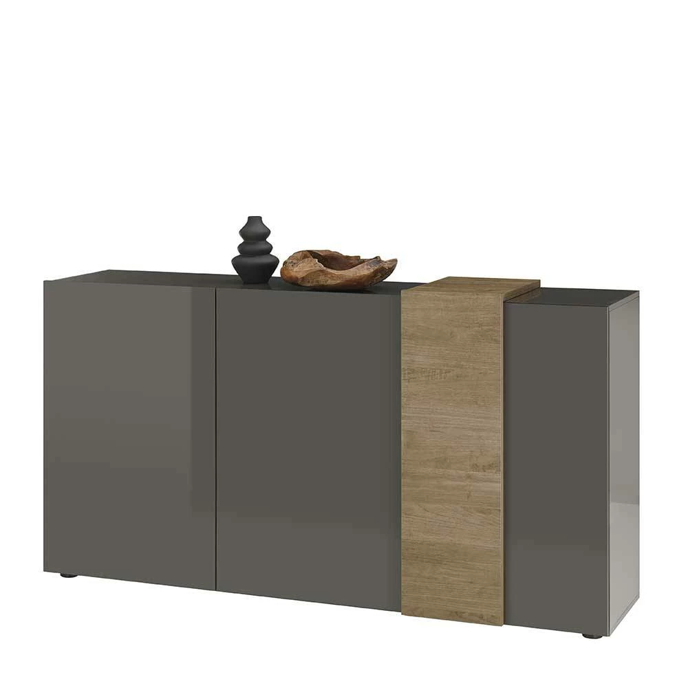 - Dekoratives Sideboard in Dunkelgrau und Eichefarben