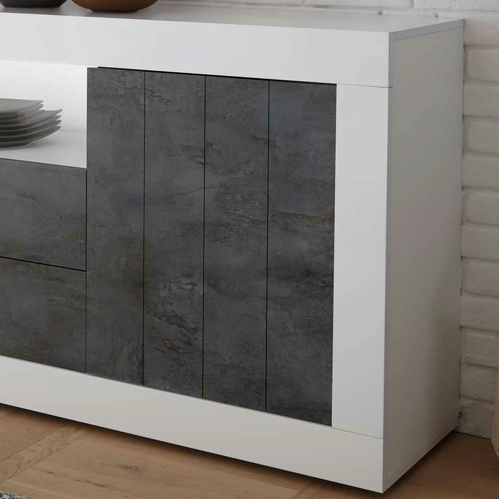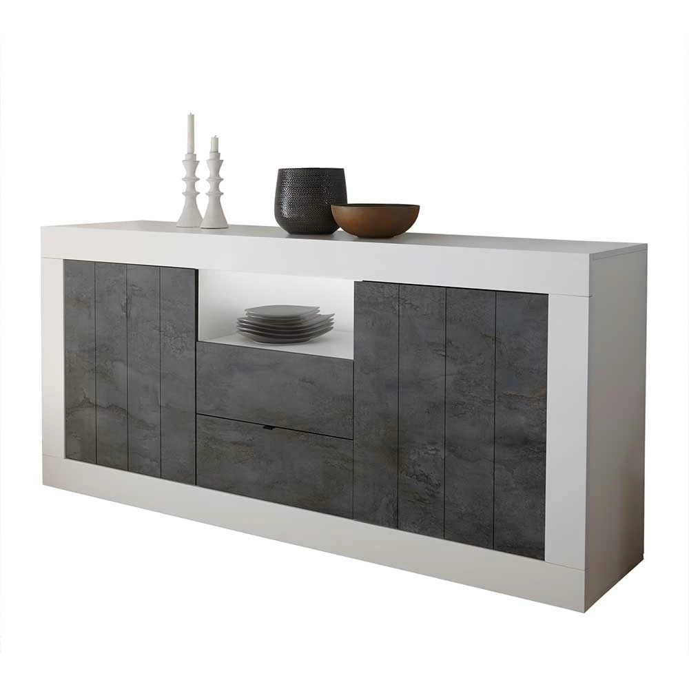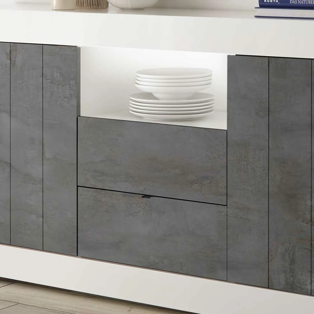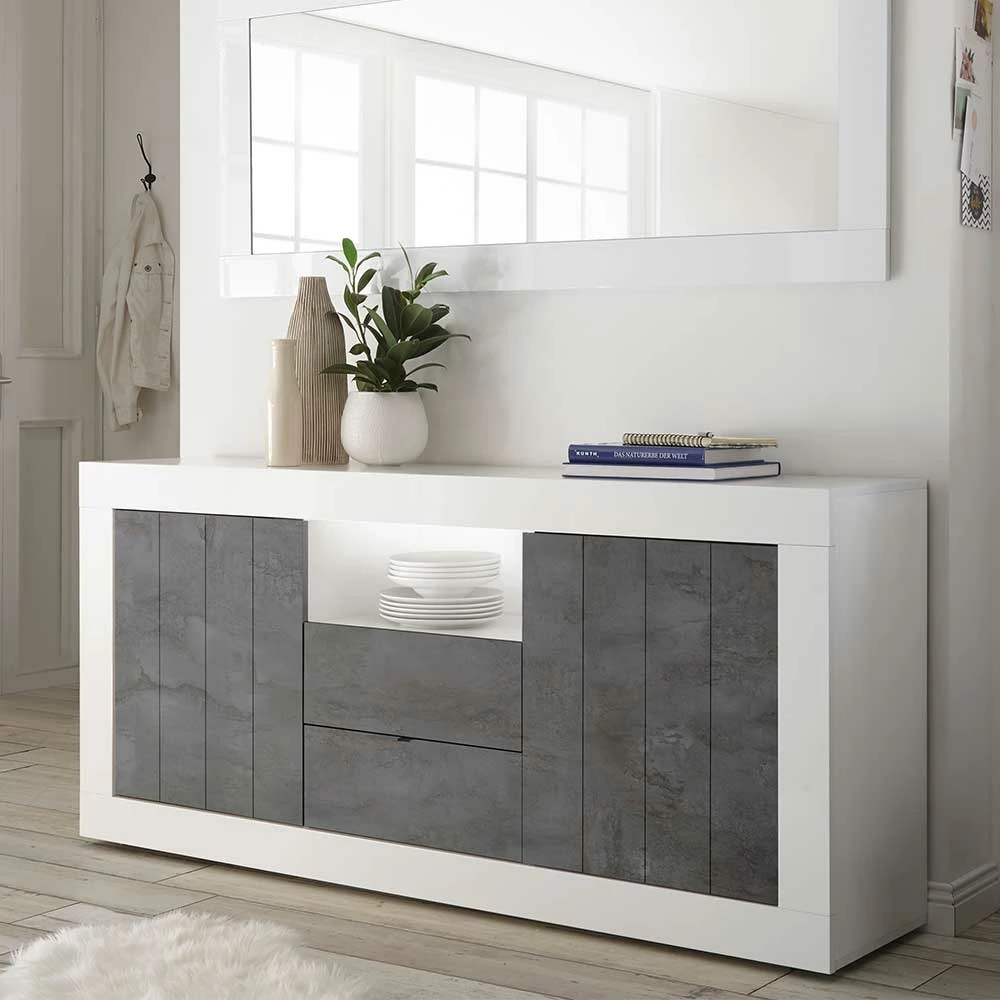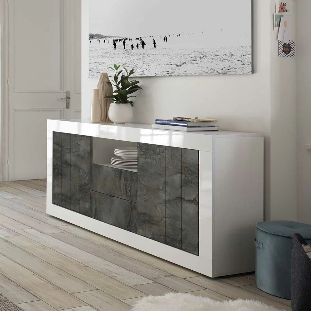 - Hochwertiges Sideboard in Weiß Hochglanz und Dunkelgrau
