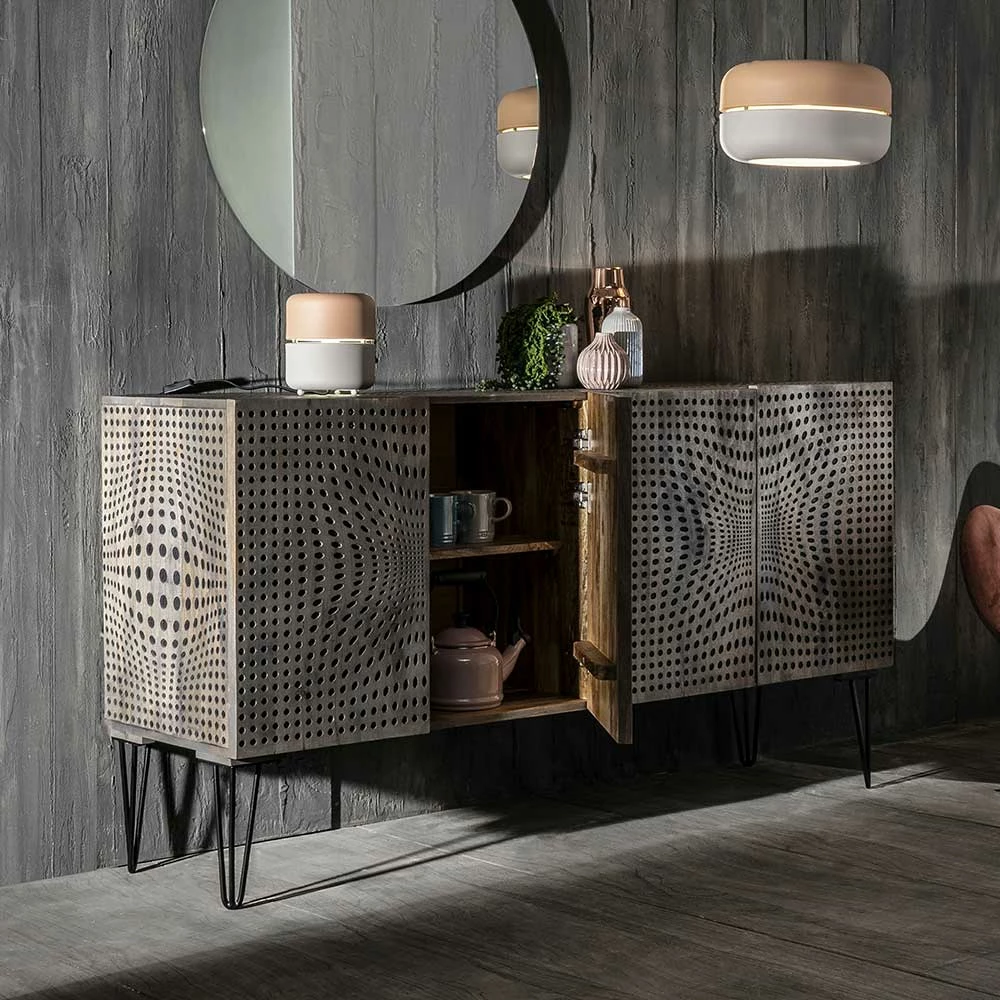 - Beeindruckendes Sideboard in Mangoholz Grey Wash