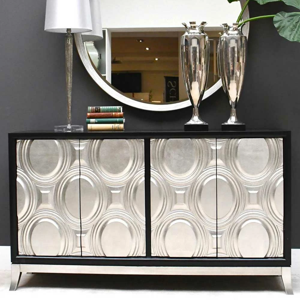 - Markantes Sideboard in Silberfarben und Schwarz