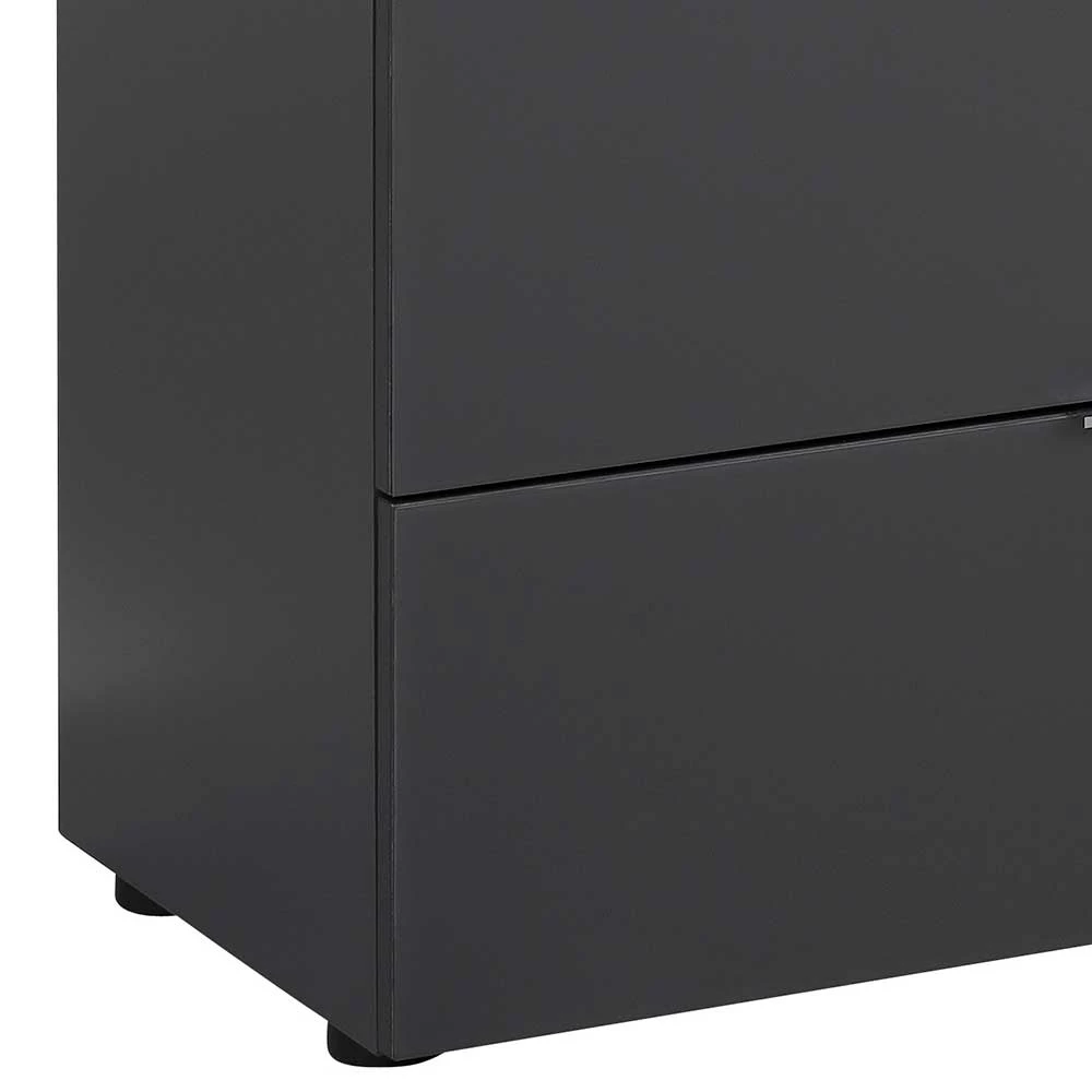 - Oberflächen kratzfest melaminbeschichtet in Anthrazit, Front mit Glas in Anthrazit matt beschichtet