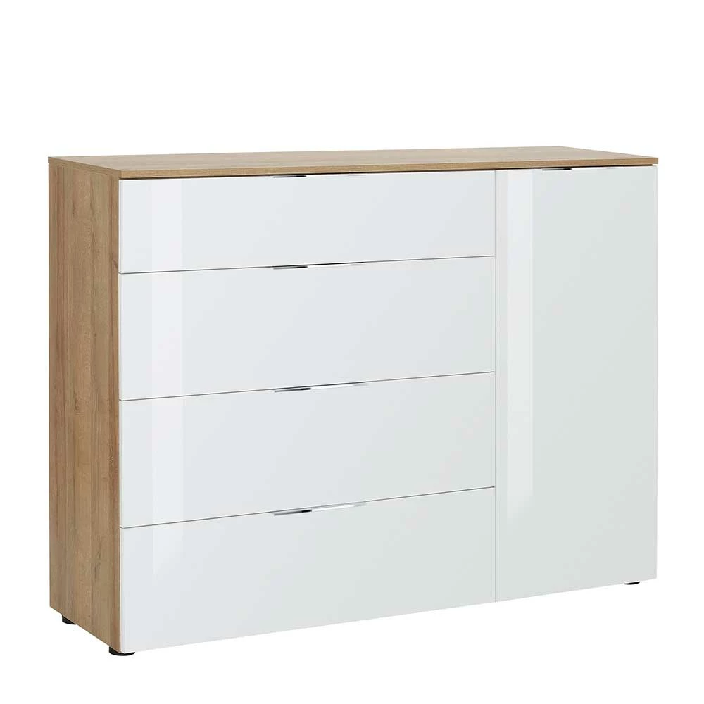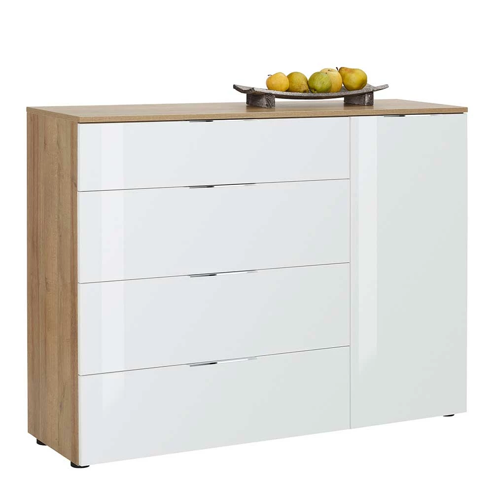 Esszimmer Kommode In Weiß Glas & Eiche – Ayfuna