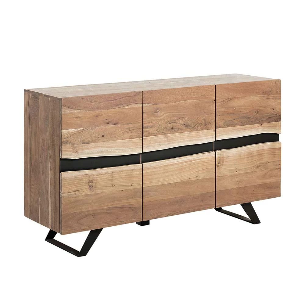 - Ansprechende Kommode in Akazie Naturfarben und Schwarz