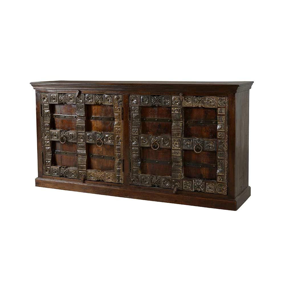 - Aufwendige Holzschnitzereien und Metallapplikationen zieren die Türen