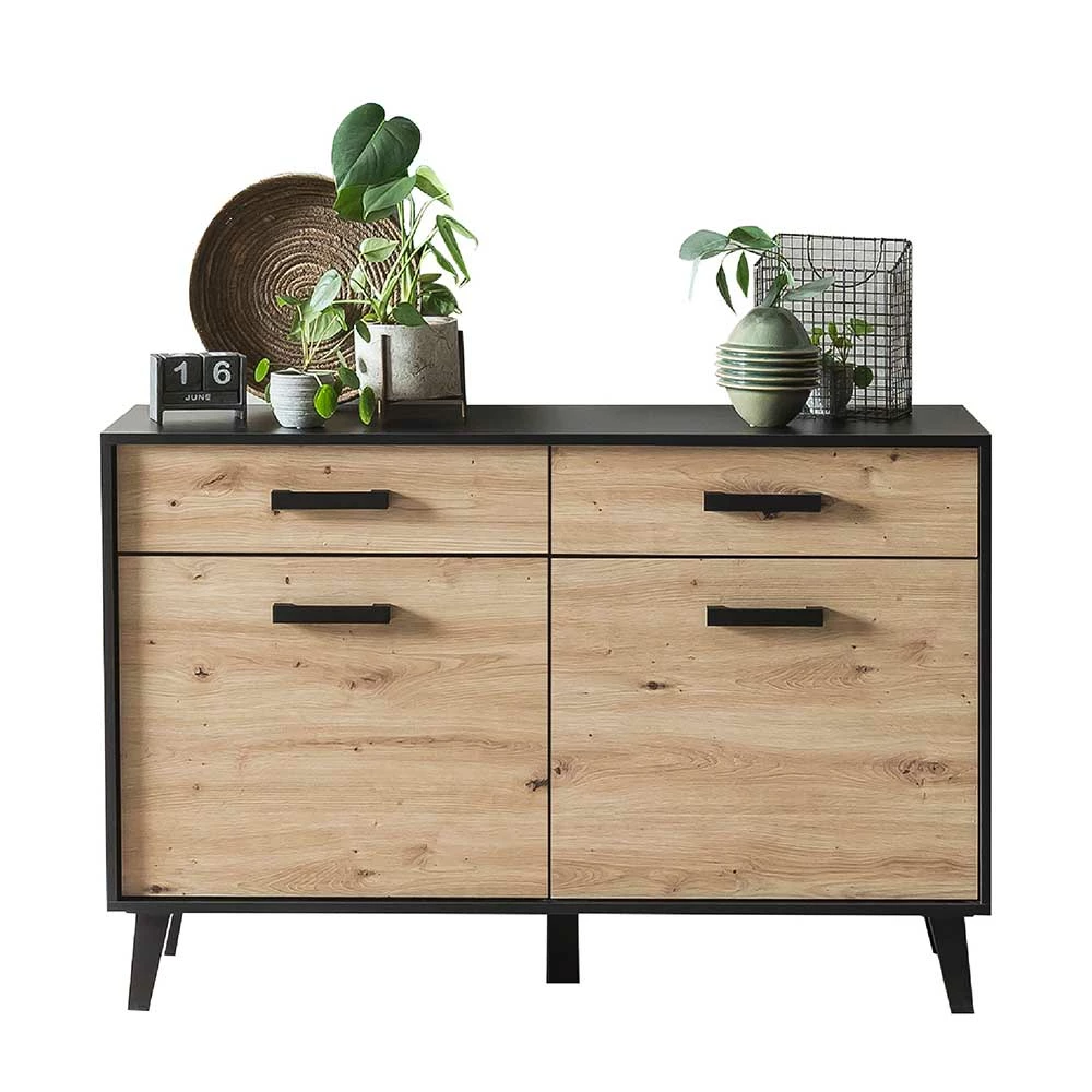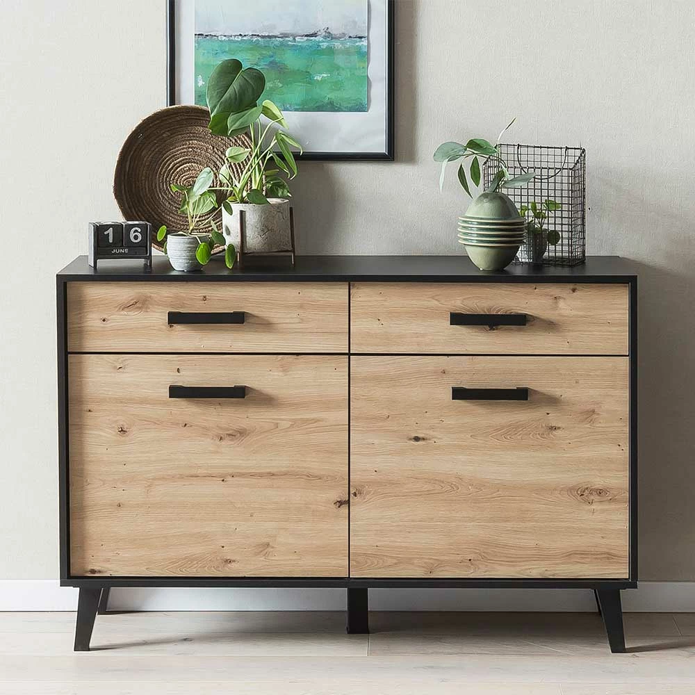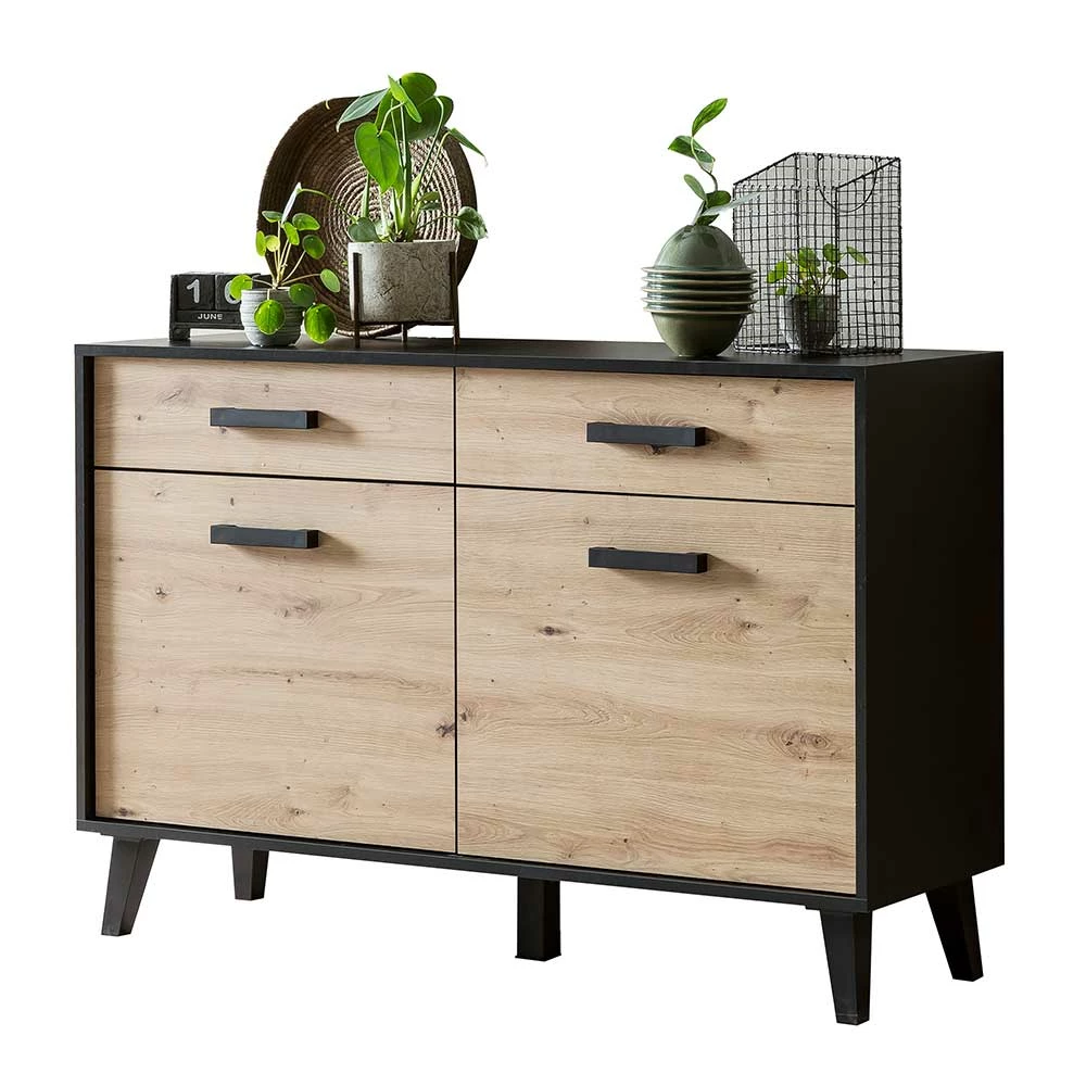 - Aktuelle Kommode in Schwarz und Wildeichefarben
