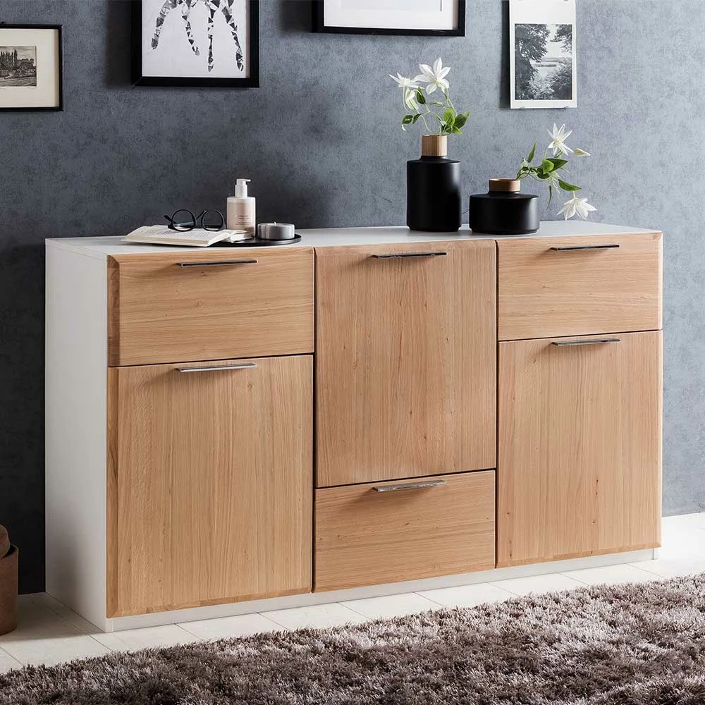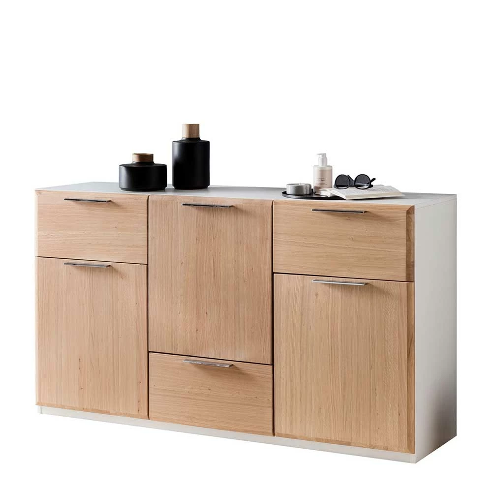 - Ansprechendes Sideboard in Asteiche Bianco und Weiß