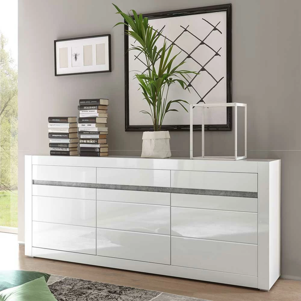 - Anmutige Kommode in Weiß Hochglanz