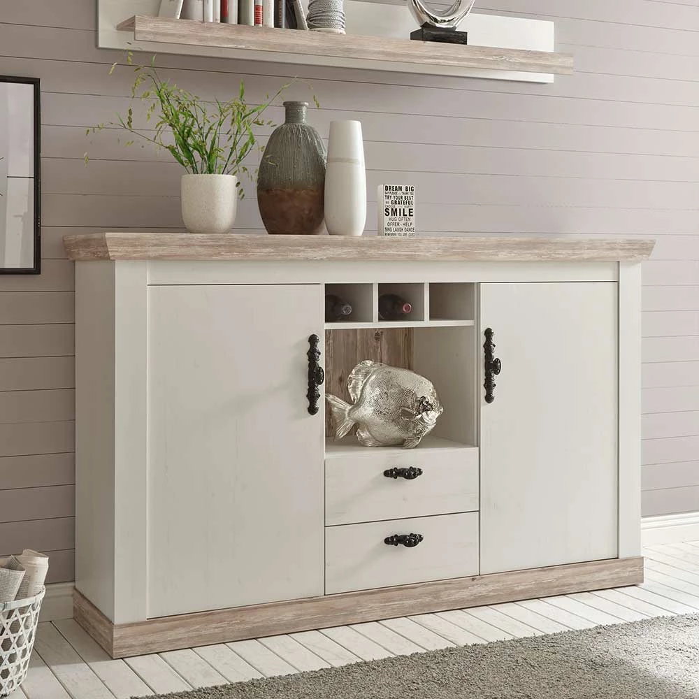 Stauraum Sideboard Im Scandi Landhaus Stil Nedita In Weiß