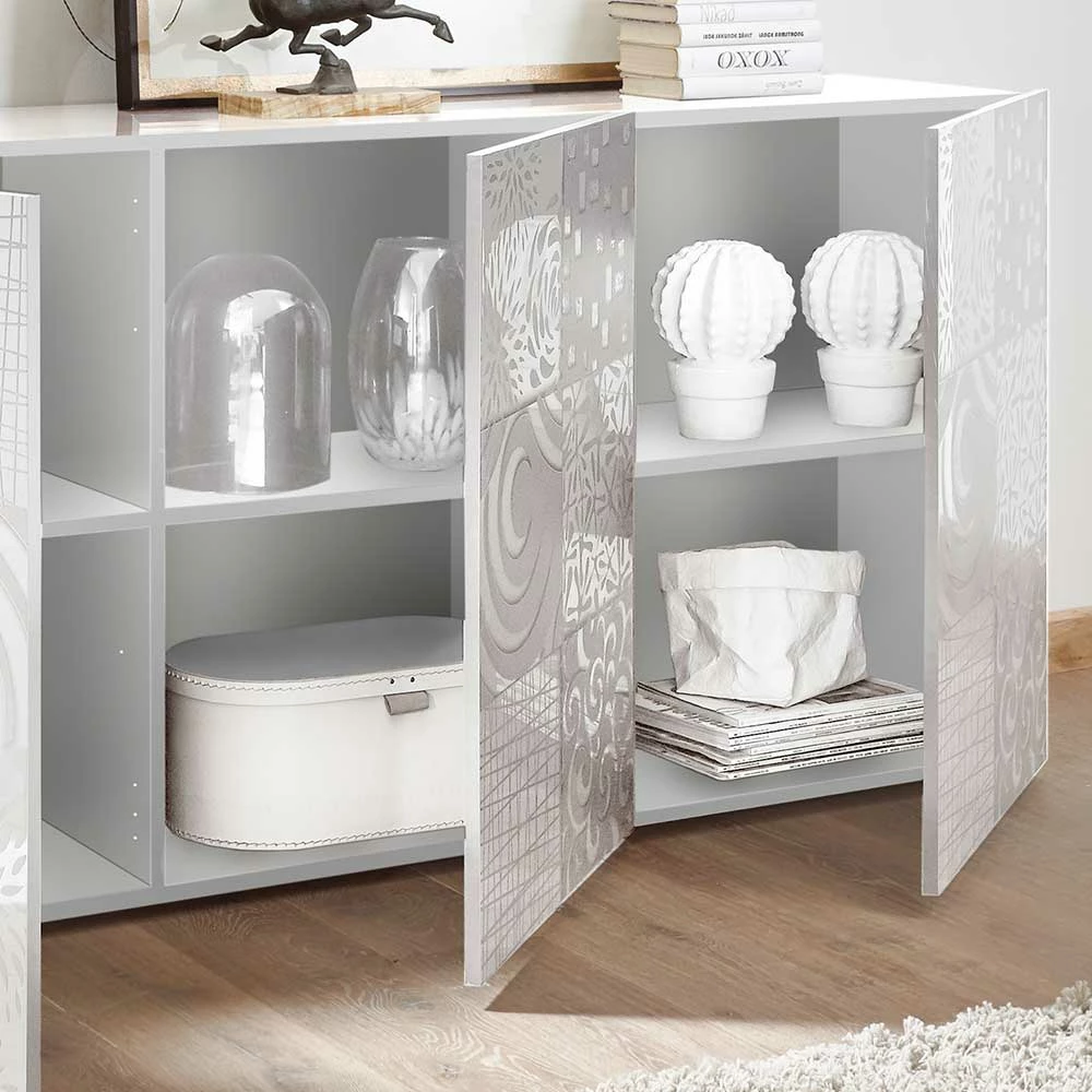 Weißes Hochglanz Türen-Sideboard Bedruckt – Vascaub