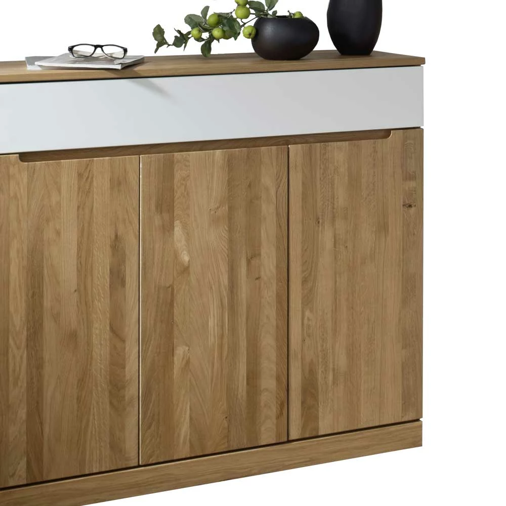 - Ausdrucksstarkes Sideboard in Wildeiche und Weiß
